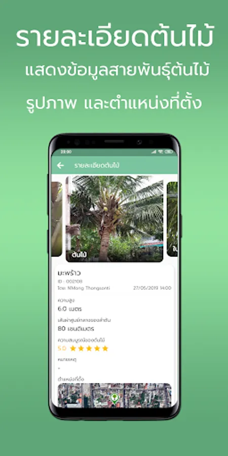 Build and access the perennial database in the city. The user can specify the coordinates, species, height, diameter. And perfection With your mobile phone Just take a picture of the canopy, the details of the leaves, flowers and the fruit of the trees. And specify the GPS location on the map, determining the height, diameter Assess the integrity of the tree. And then click send information Information will be collected and distributed in an open data system for everyone to access.