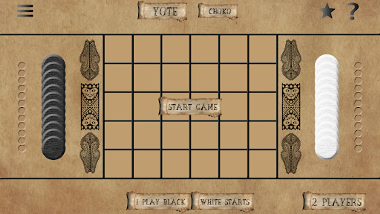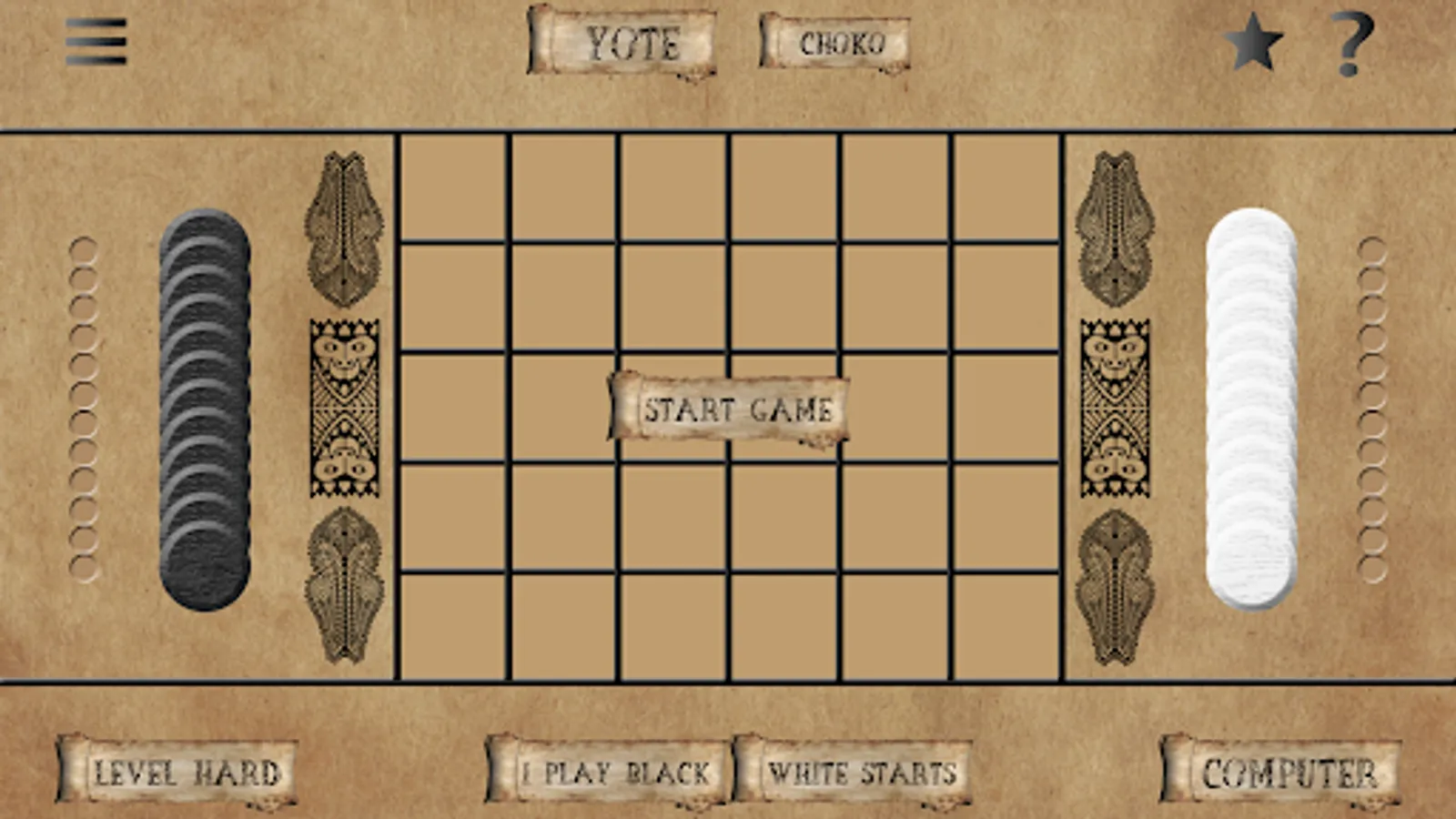- Help button (? in game) for learning the rules of the Yoté / Choko game