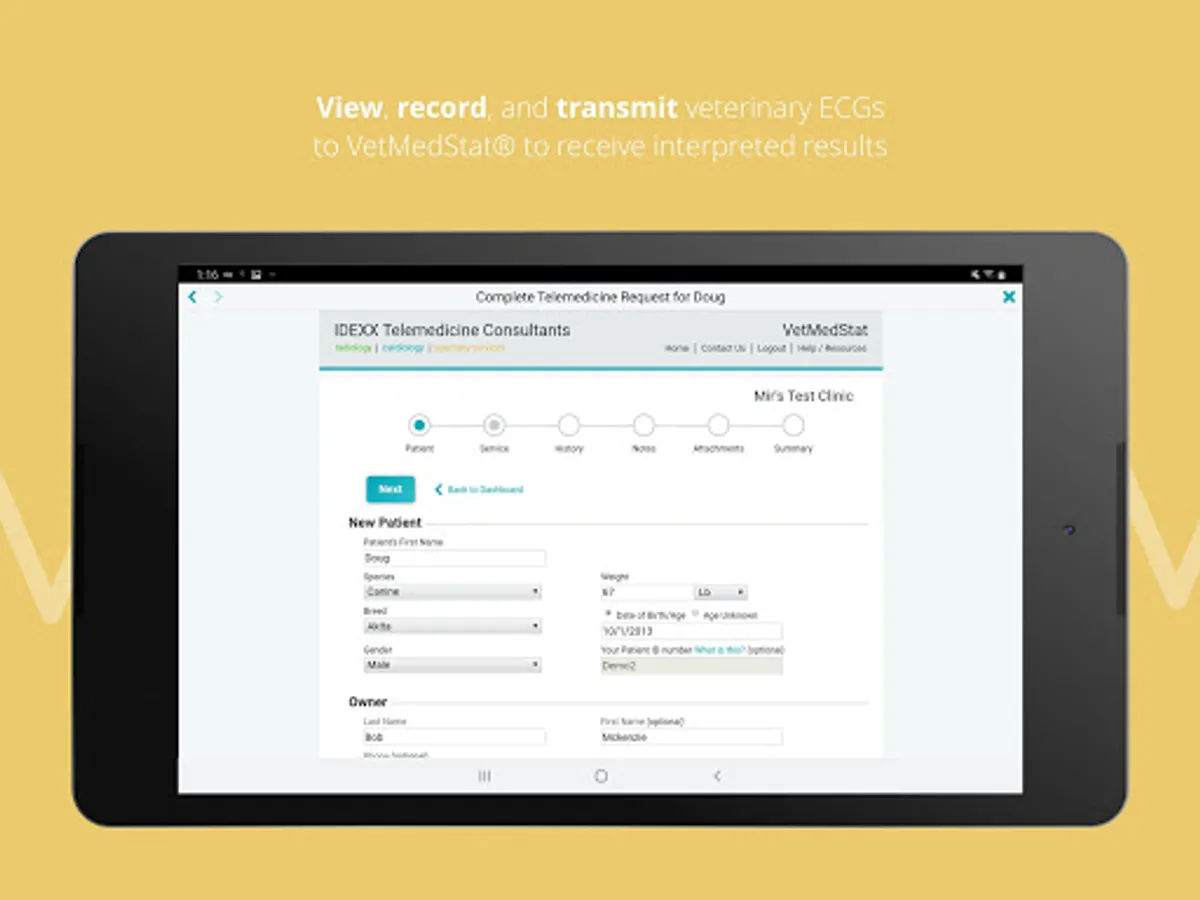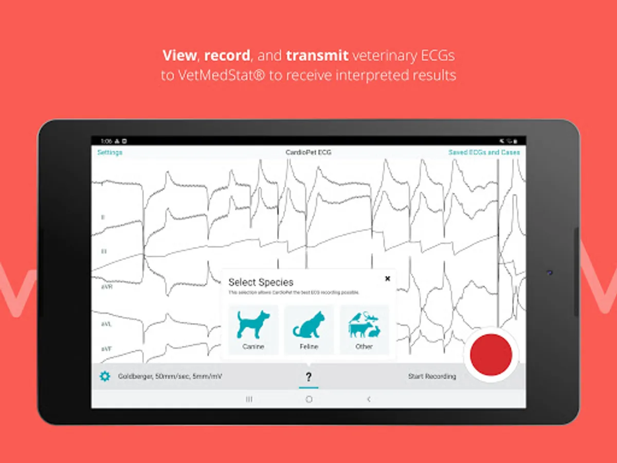 The IDEXX CardioPet ECG app lets you view, record, and transmit veterinary ECGs to VetMedStat® cardiologists for consultation. The app works with the CardioPet ECG transmitter, using Bluetooth® technology to transmit a six-lead ECG for the highest diagnostic quality.