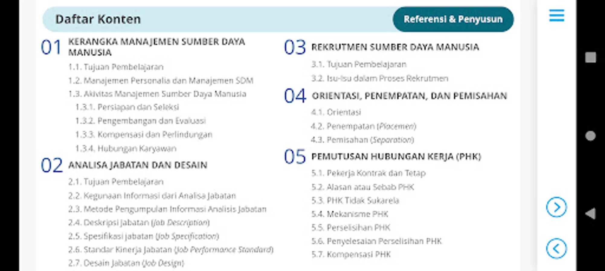 The "HR Management" application is an application that contains basic knowledge of HR Management which is equipped with interactive audio-visuals.
