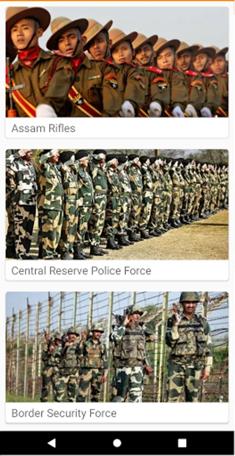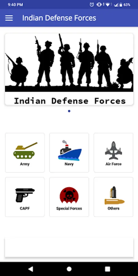 This Home page of the app allows user to look for the following defense forces: