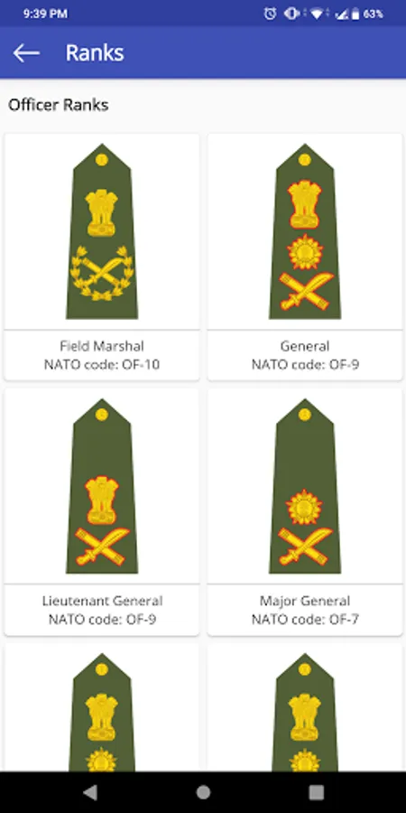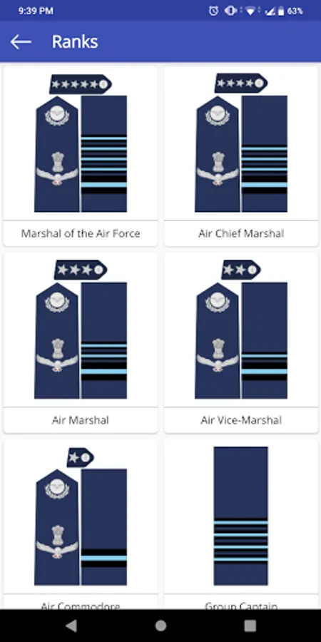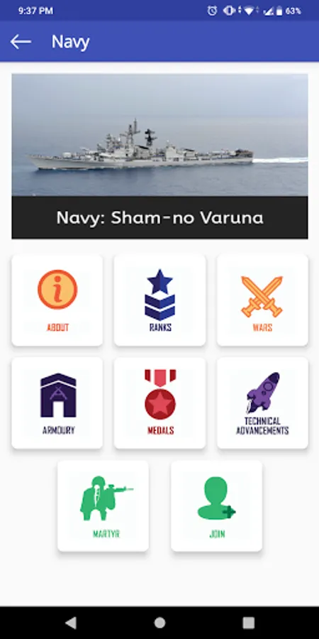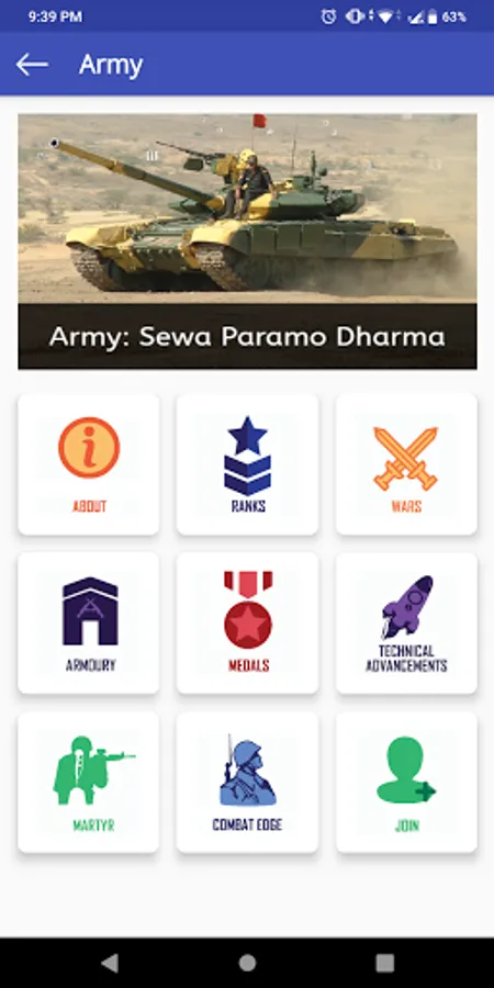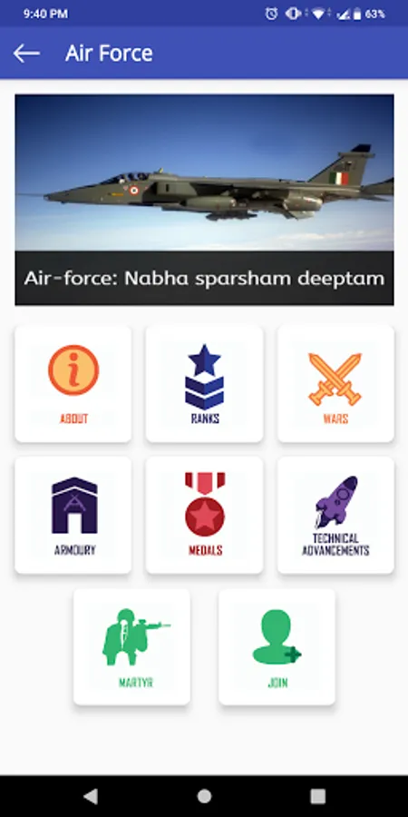 The app aims to deliver all the basic information about all the Indian Defense Forces. The information you'll be able to explore includes: