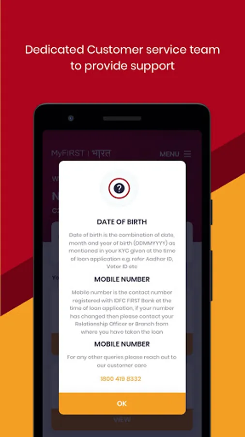 You can access MyFIRST Bharat app in a few simple steps of entering your Date Of Birth and mobile number registered with the Bank and authenticating yourself through OTP.
