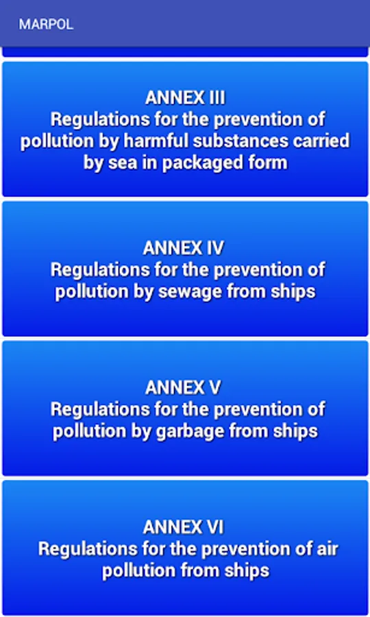Annex VI Prevention of Air Pollution from Ships (entered into force 19 May 2005)