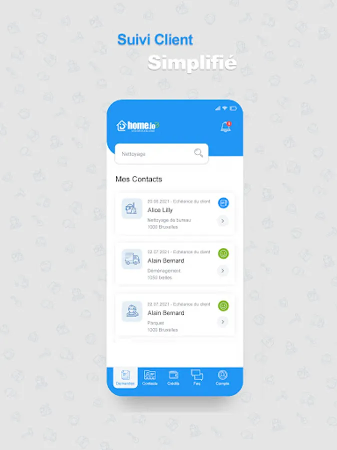 Cleaning, moving, garden or home work, in a few clicks define your sectors of activity as well as your areas of intervention and receive work opportunities that suit you.
