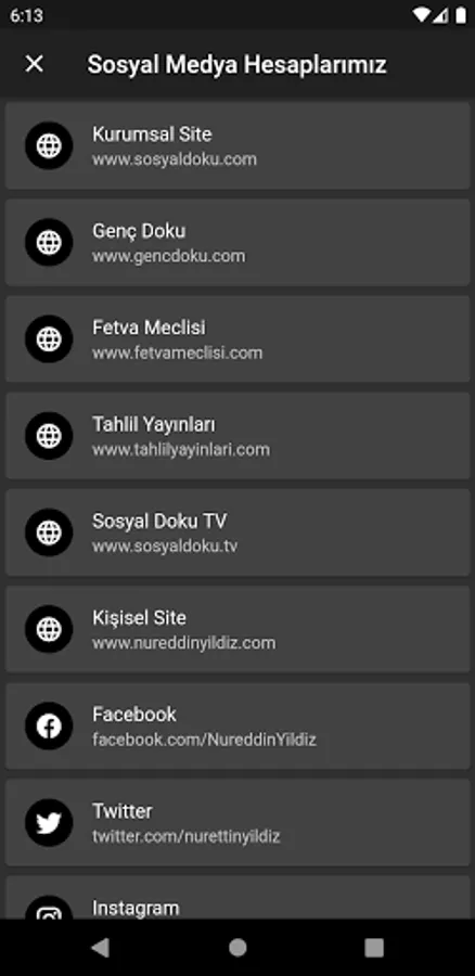 - The application includes promotional and supply links of all the works of Nureddin Yıldız, the latest news from the Social Doku Foundation, our project works, our websites, our video channels and our social networks.