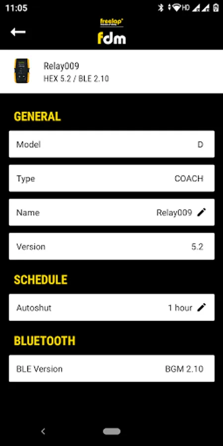 Freelap Device Manager allows to update and configure by Bluetooth (BLE) the Freelap devices (Eg. Relay Coach BLE, LED Display, ...). It is also possible to change the name of each device.
