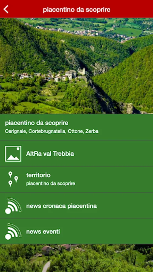 The App accompanies you along excursions and itineraries in a borderland between Liguria, Piedmont and Lombardy, at the edge of the Piacenza area, in the upper Trebbia valley, named in this project that includes the Municipalities of Cerignale, Corte Brugnatella, Ottone and Zerba , AltRa val Trebbia.