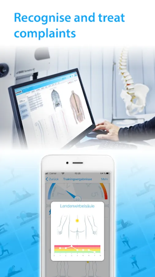 A unique feature is the collection of biometric measurement data, which allows incorrect posture and its causes to be identified. Based on these findings, your doctor generates an individual training program.
