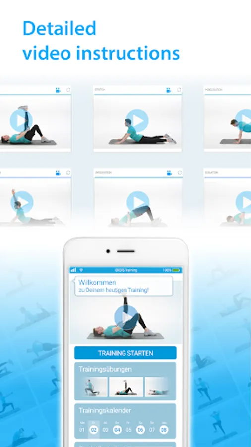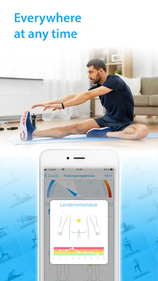 For your individual therapy, a pool of over 2000 different training exercises is used, which correspond to the latest training science findings and are explained in detail in video instructions to ensure correct execution. This way you always have your personal training with you. You can constantly work on alleviating your back problems and improving your health in order to lead a pain-free life. The training program consists of self-exercises for which no special aids are required.