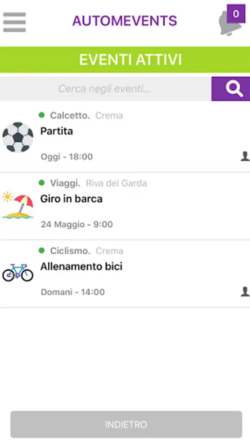 In the Life section you can use Automevents to manage events related to everyday life such as aperitifs, dinners, concerts and many other fun situations.