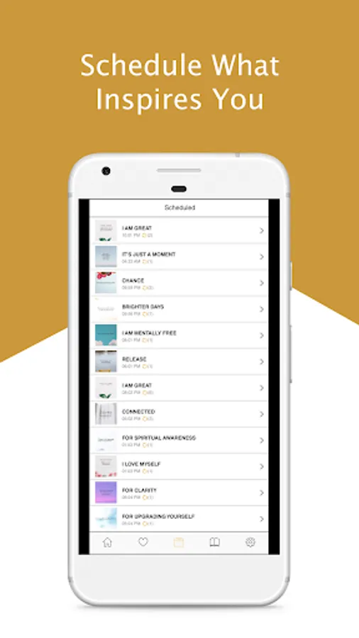 You can schedule inspiration that resonates with your heart so you can be reminded as often as you like. Repetition is very powerful so feel free to schedule away. You’ll have a section of all your scheduled words to access at any time.