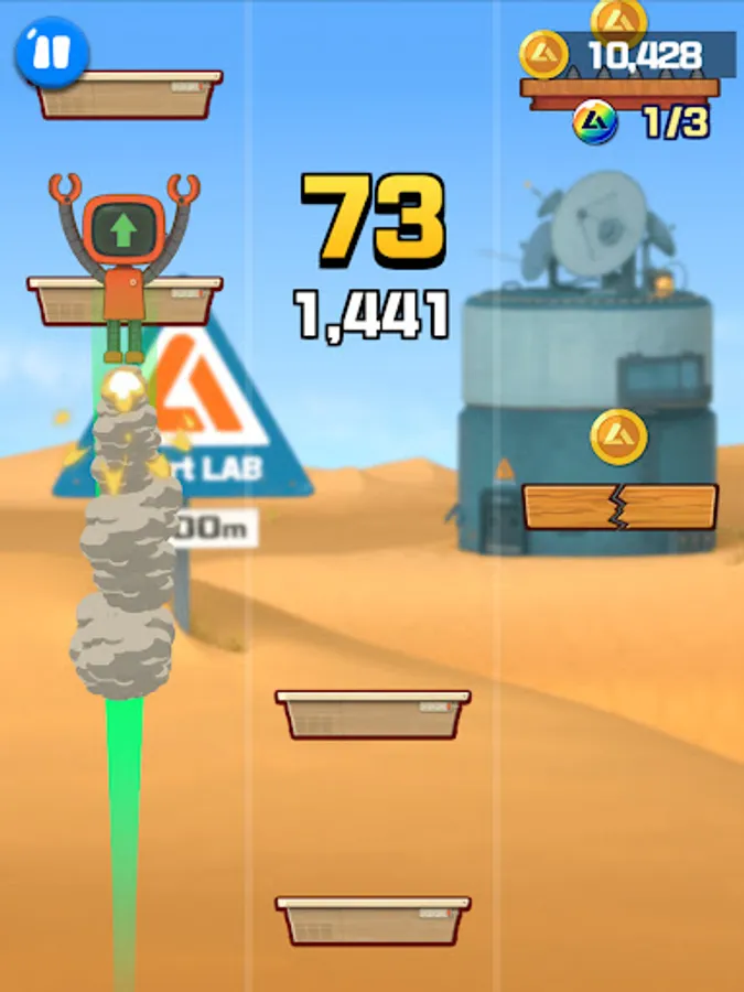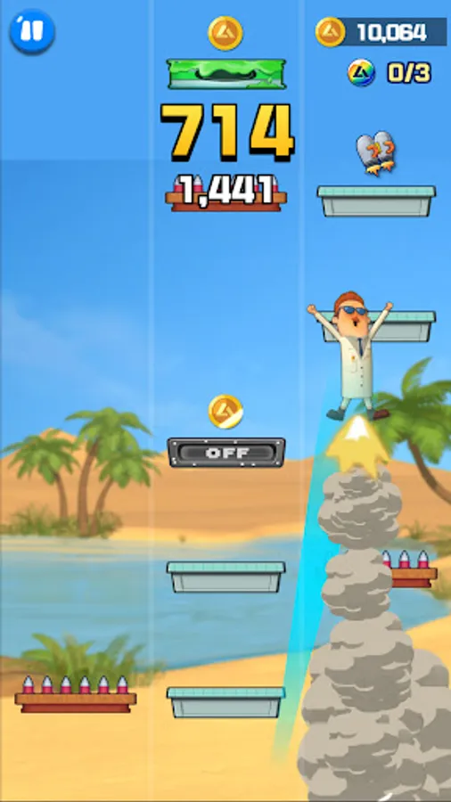 To escape the furious doctor, help Maca and Roni to run away by jumping higher and higher up in the sky!