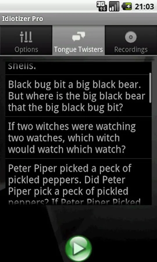 Finally a list of tongue twisters it’s also included for those who do not know what to say once they begin to be idiotic.