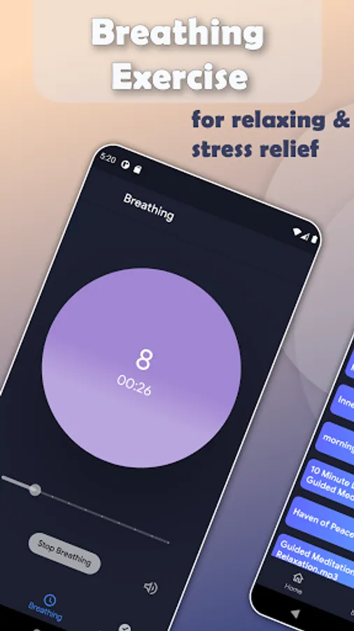App have breathing feature, which will help you to breathe deeply and count your breathing as well. Those things that happen when you are stressed, such as increased heart rate, fast breathing, and high blood pressure, all decrease as you breathe deeply to relax. The way you breathe affects your whole body. Breathing exercises are a good way to relax, reduce tension, and relieve stress.