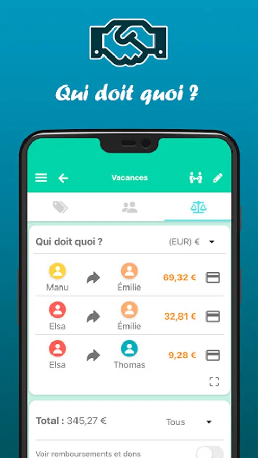 Stay connected to your friends and follow your group's expenses in real time by creating a Countwiz user account. You only need the mobile app for smartphone or tablet.