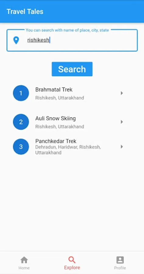 Travel Tales helps you find your next adventure stop. You can browse through our curated collections, or search anything you want simply with the place's name, city or state. Check all the details of the place along with best time to visit and estimated duration for enjoying to the fullest.
