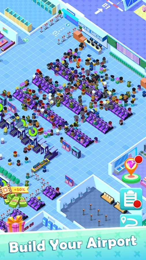 Expand the airport entrance, update the service facilities of airport hall, build airport shop, get more planes and assign more airlines. Step to step to strong your airport empire and get more airport profits!