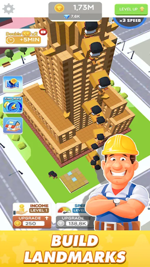 🏫👍 Travel the world, unlock famous and new landmarks and build them from ground up. Block craft is the part of the game mechanis which is also a combination of idle games together with tap tap and clicker mechanics. House building is very fun, you start out each level with a building arena, where you must build up a landmark. Clicker that makes your free time a fun adventure, tap tap and build.