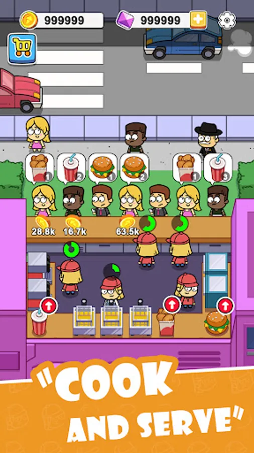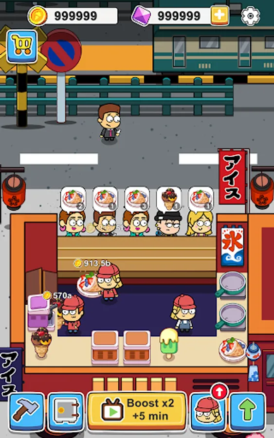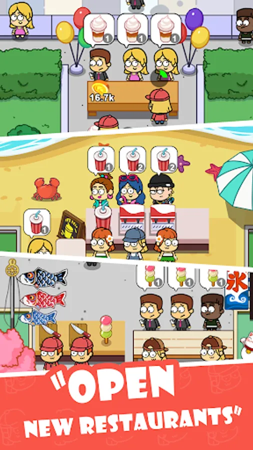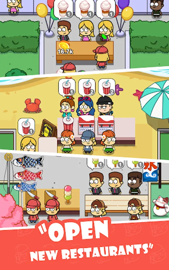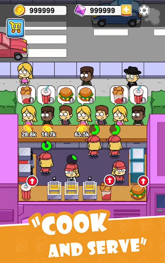 Do you want to be a food tycoon? Get into this restaurant management sim game now, start as a street food bar, recruit staff and upgrade to earn more money, then open a bigger restaurant!