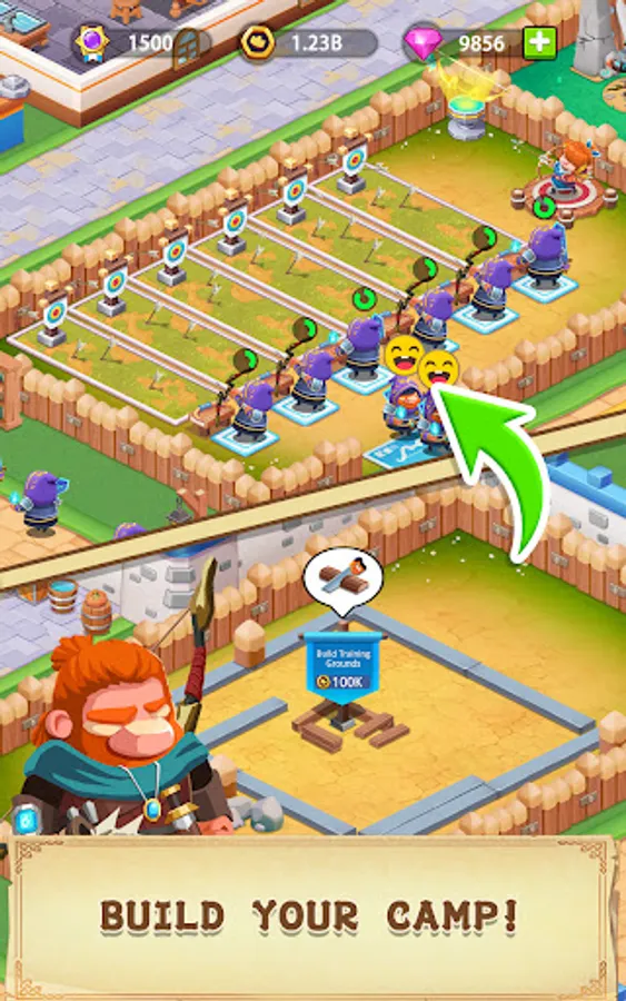 - Build diverse facilities such as training grounds, dormitories, canteens, and taverns to enrich camp life.