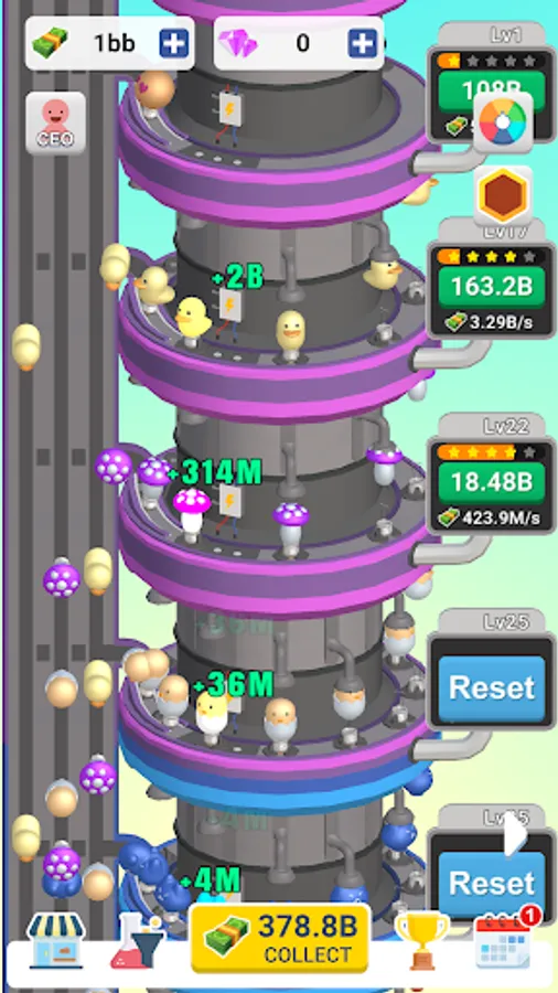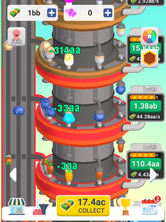 Starting from the first light bulb production line, produce light bulbs, transport them to the conveyor belt, and sell them. Use the profit to upgrade the production line to improve production efficiency. You can also buy new production lines to generate more light bulbs. When you have enough wealth, you can hire administrators to help you manage. Continuously develop your company until it becomes the largest one in the world.