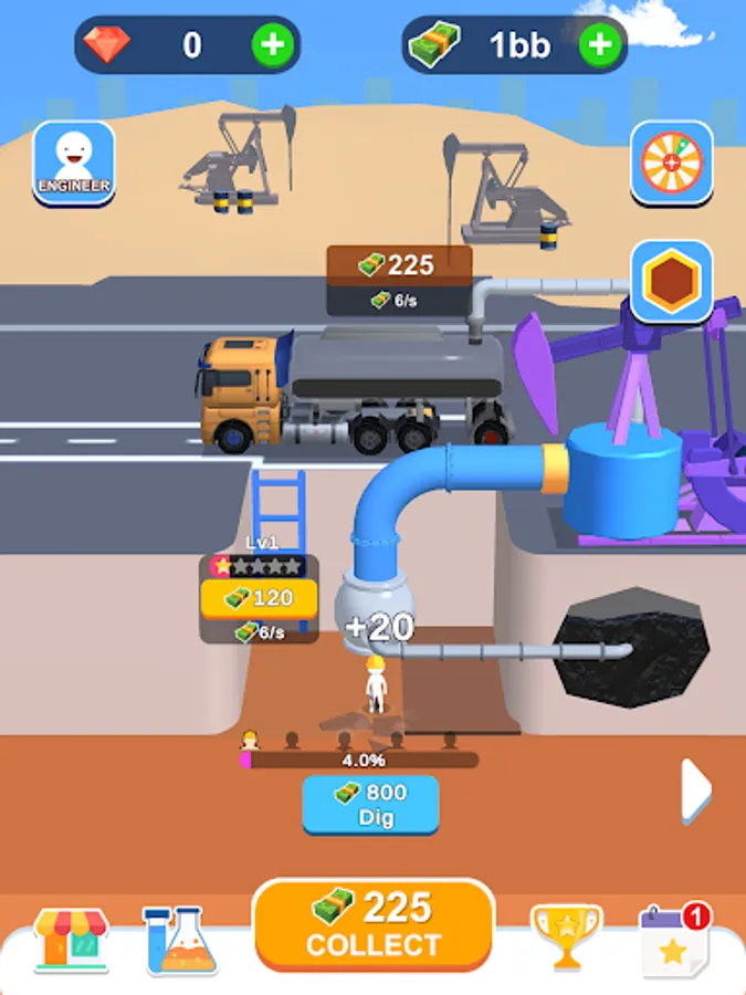 You run a oil company. You are lucky to find an oil field in the desert. Now let the device start working and dig out the first barrel of oil for you. Constant oil means wealth. You can constantly upgrade your devices to make them more efficient. Dig your oil well into the heart.
