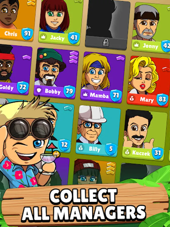 With the help of your champions you can increase your earnings and deploy them in fights. Collect champion cards and level them up to increase their power even more. A good tycoon knows how to become wealthy and defend its empire. Every champion is also a tycoon manager that automates your business. You can be the boss and get rich.