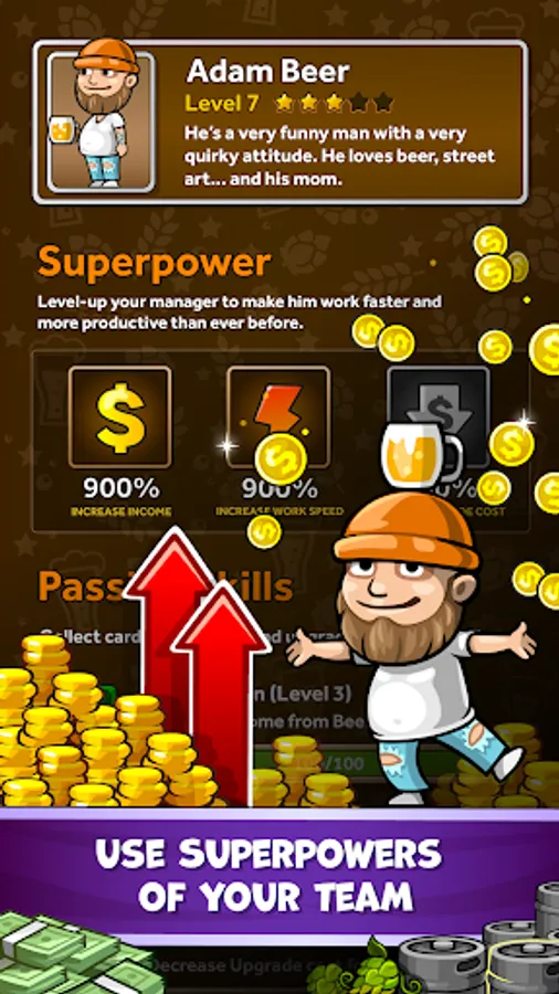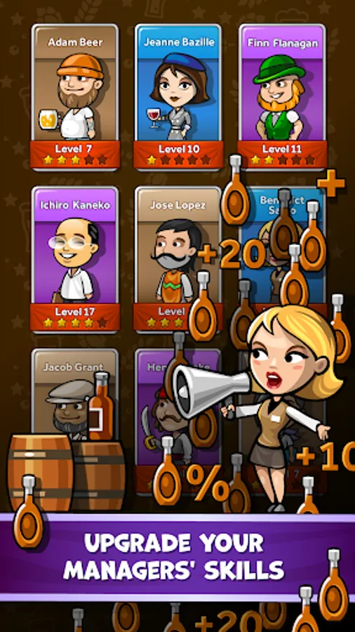 When you upgrade your manager’s skills, they level up. An ability to have a say in the professional growth of your brewing squad translates into an opportunity to have an impact on the amount of money they make for your business as well as the speed at which they work. As a bonus, the game will also calculate the cost of such upgrades, giving you better visibility into the ROI (Return-on-Investment) rate!