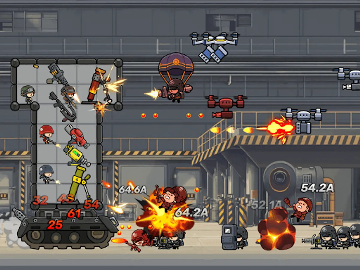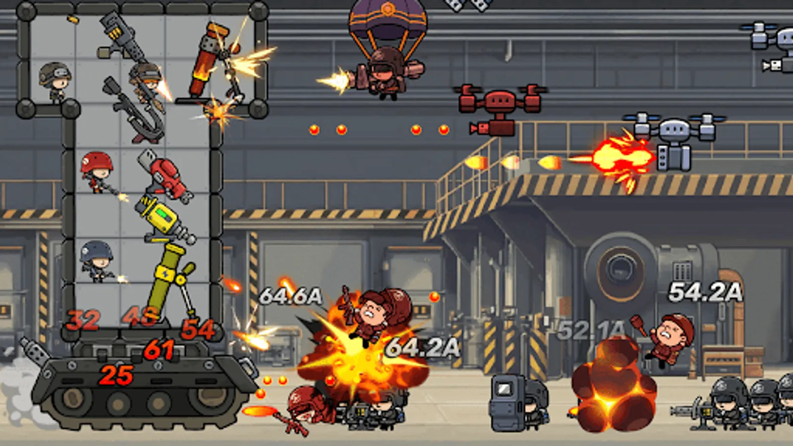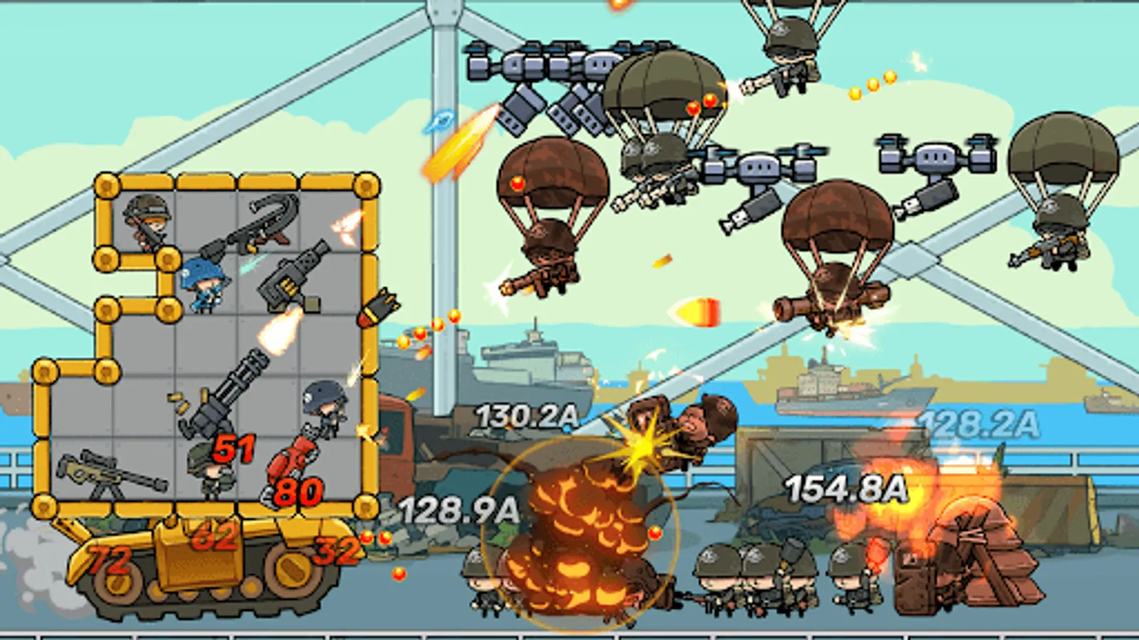 Customize your tank by selecting and equipping the right weapons, soldiers and accessories. Use all the space as much as possible!