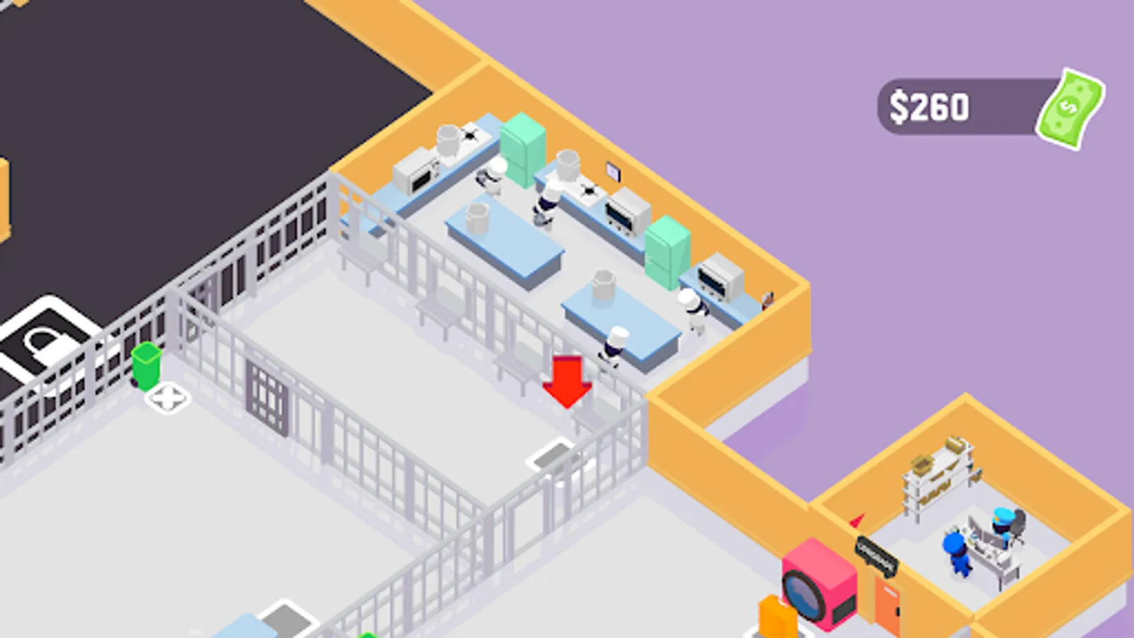 Efficient staff management is crucial for your prison. Analyze the situation and hire or dismiss employees as per your business strategy and work requirements. Your team can consist of kitchen staff, doctors, builders, janitors, guards, and office workers. Each department will fulfill essential needs in your business, and smart team management will make your prison profitable.