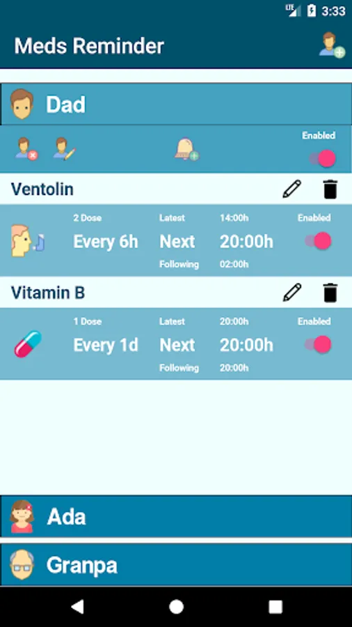 Remember when to take your medications and those of your family or your pets easily and directly. Forget about filling complex forms, or entering more information than necessary ... Just fill in what is taken, how much, when and for whom.