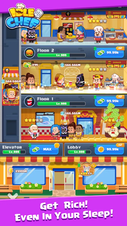 Automate your workflow, merge various food and collect your idle cash income, even when you are offline.