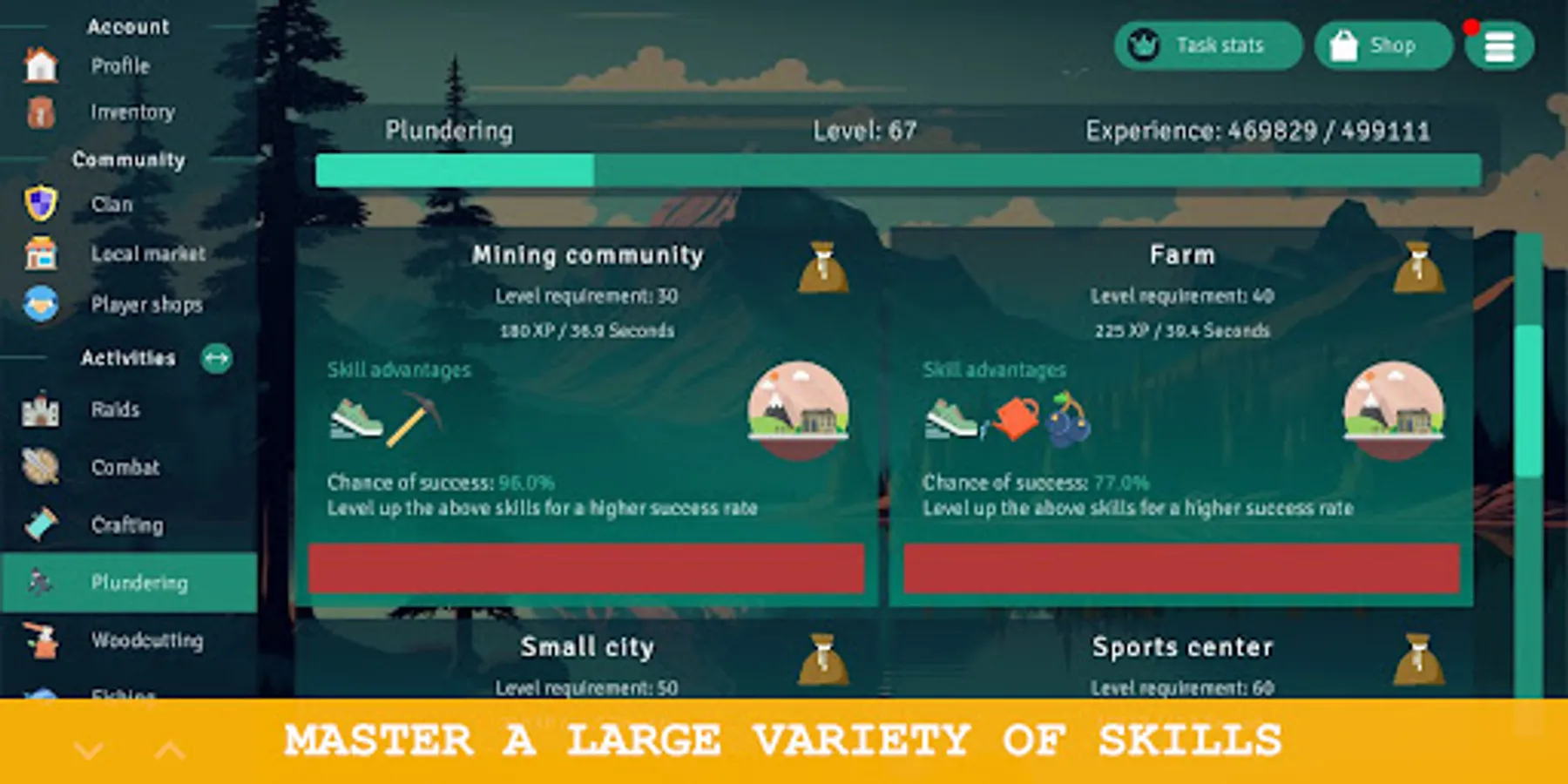 Train nearly 20 unique skills for your character