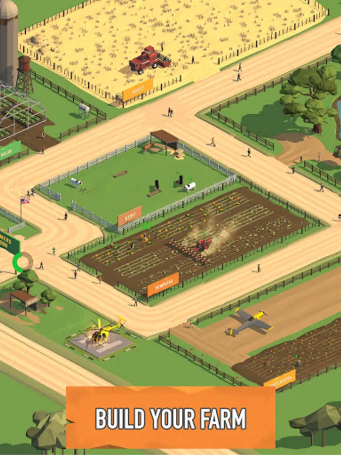Tired of similar 2d farming games? You should try something new. Idle Farm is a new clicker game with beautiful 3d animations, beautiful low-poly animals, complex farming equipment, buses, planes, and much more.
