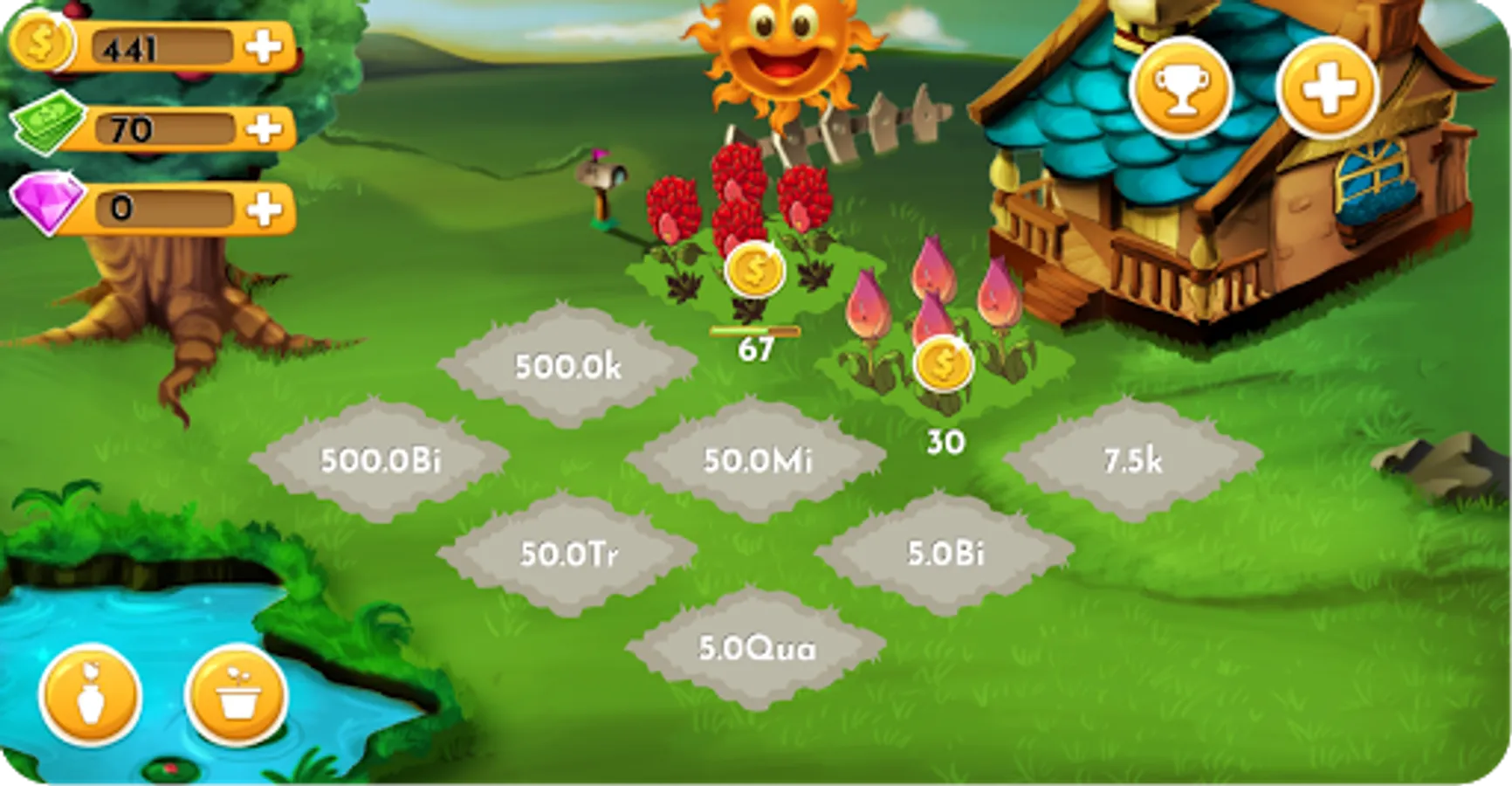 You enjoy gardening, but you don't have the time? You can do it now! Grow the prettiest & whackiest flower in town, and earn cash to grow even more exotic flowers. Invest your profits and automate your garden