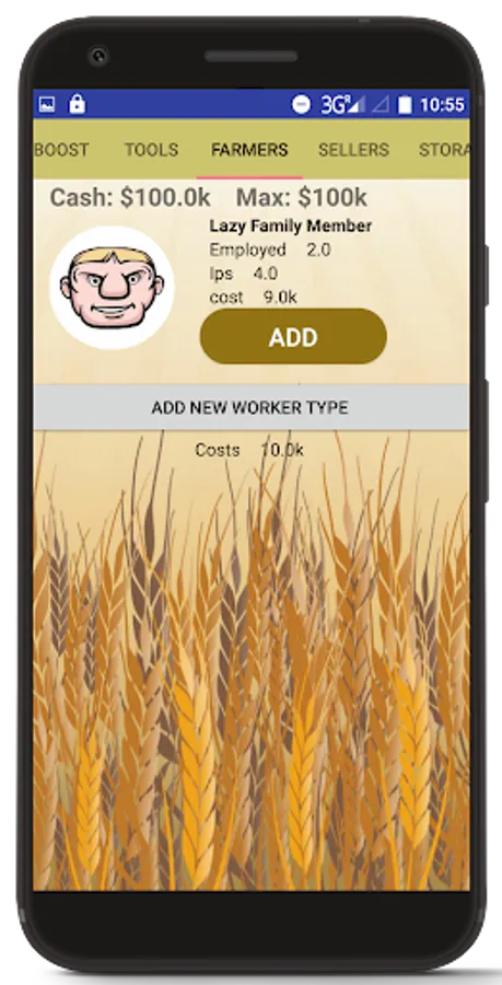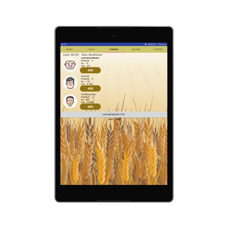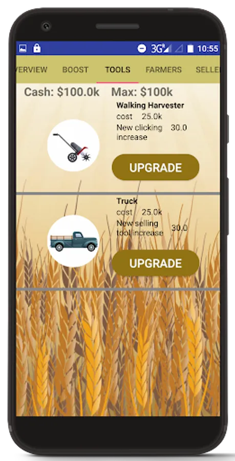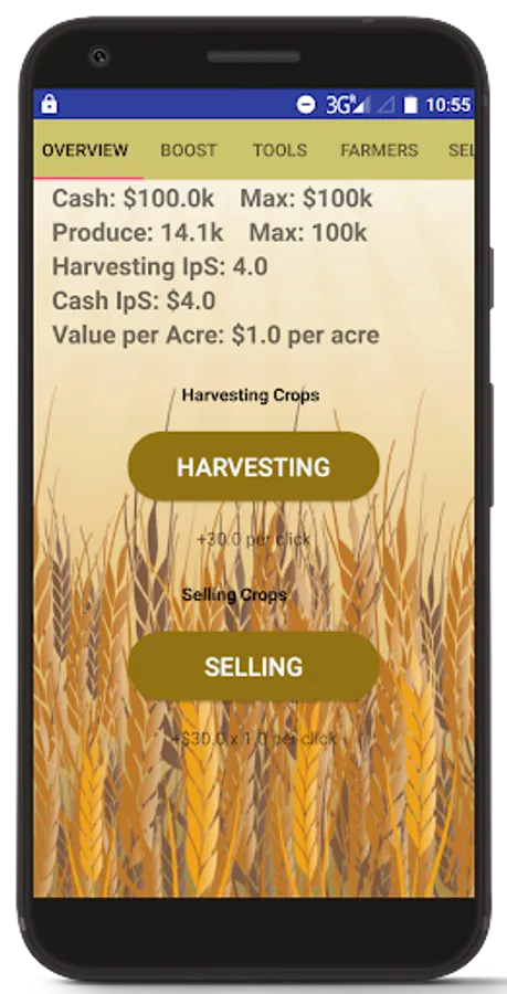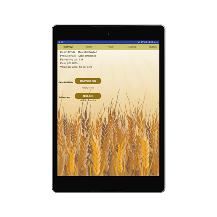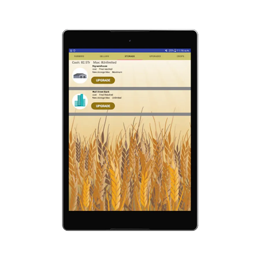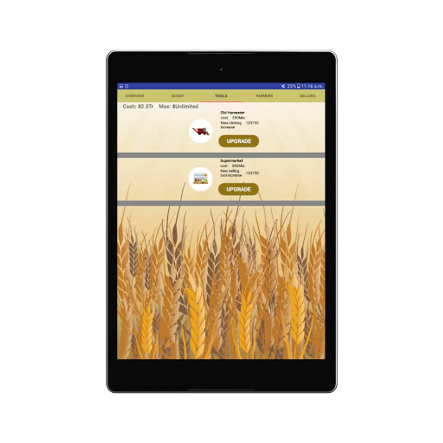You can upgrade the tools you use, hire farmers & and sellers to increase your income to become a new Farmer Tycoon