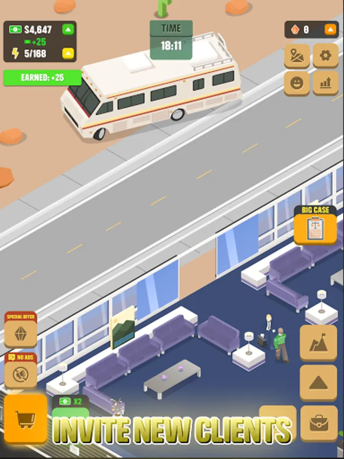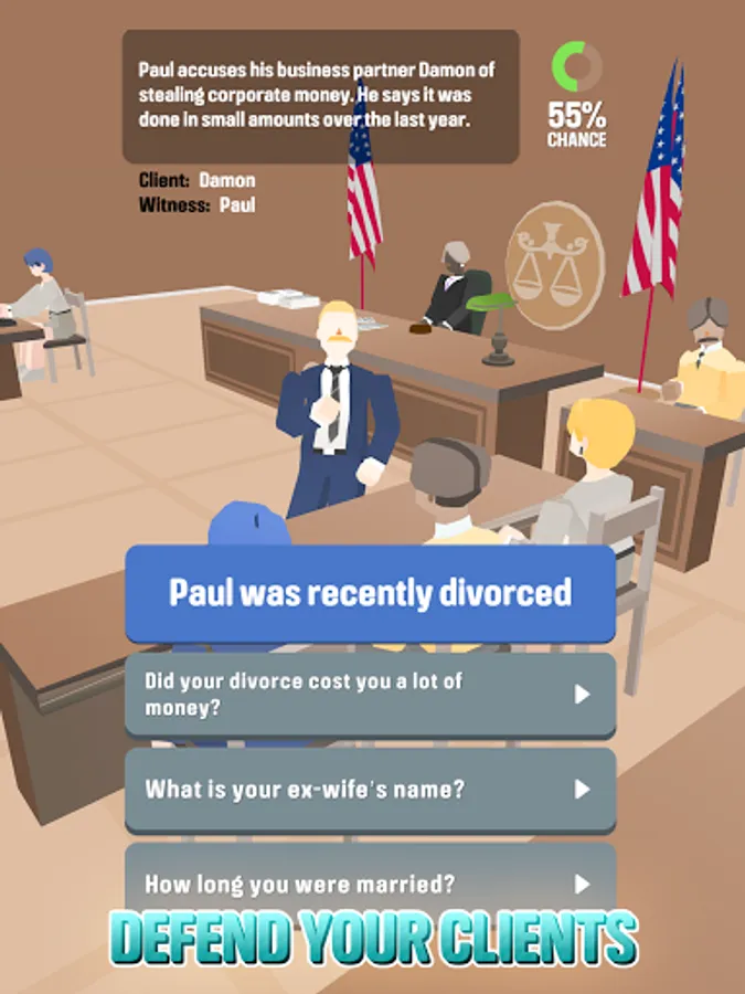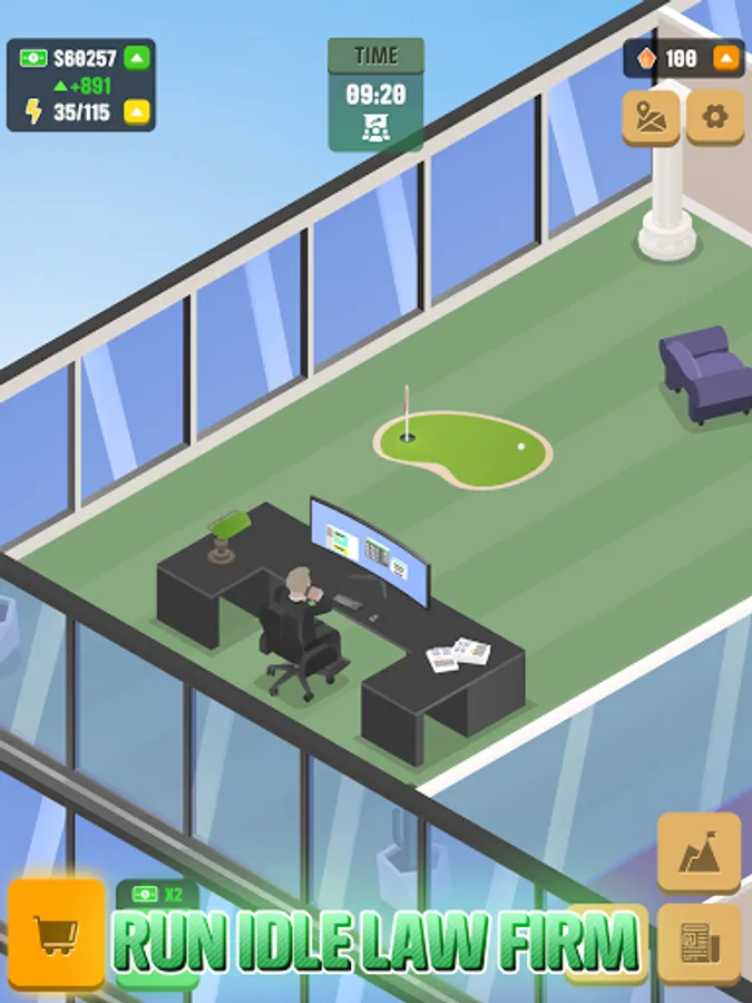 Run the office and manage your lawyers. Provide legal advice for the clients and earn money to become a business tycoon. Lawyers visit the courthouse daily, so make sure to keep them satisfied and motivated to win most cases.