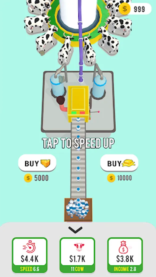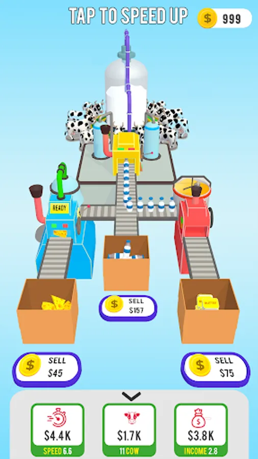 As you progress through the game, you can upgrade your facilities, such as adding more advanced machinery and technology. You can buy cheese and butter-making machines. Through this, you can expand your milk factory business. You can tap on the screen and speed up the process to get more money in this idle milk factory game.