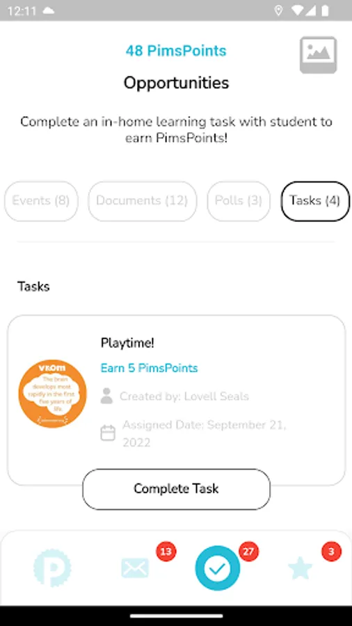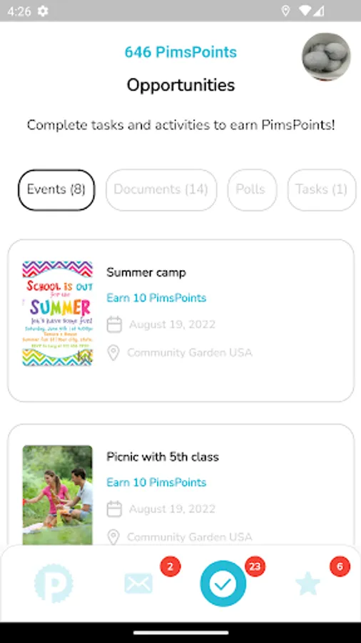 PimsPoints is a communication and facilitation app that rewards parents for being involved in their child's education. Use PimsPoints to receive communications from your child's school, participate in polls, and view, sign and return documents securely. Parents can sign up and check into school-related activities. Earn points and exchange them for rewards redeemable within the app.