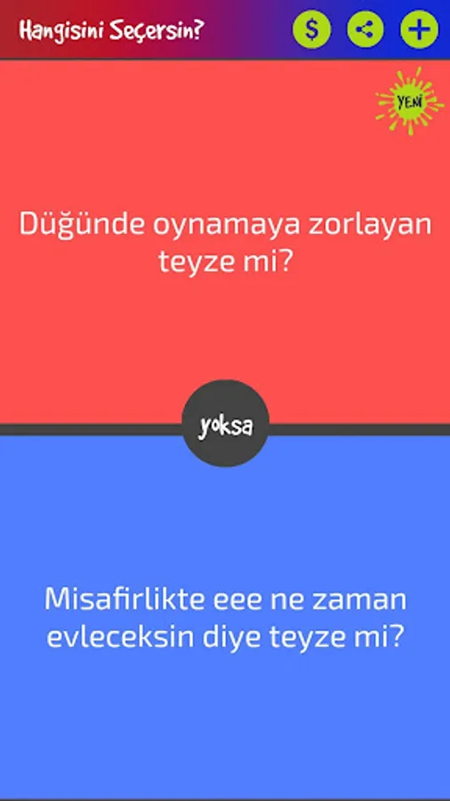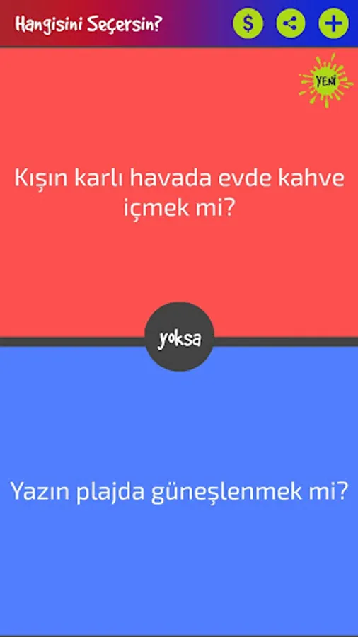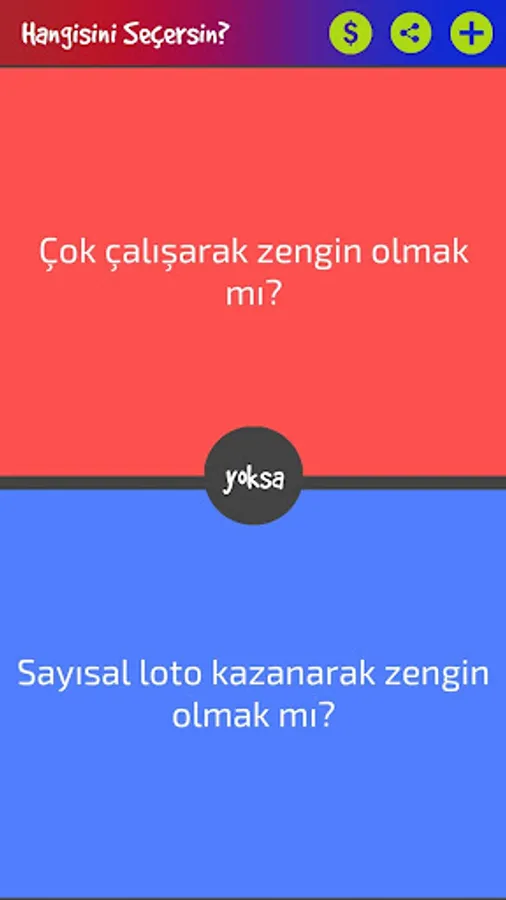 "Which one do you choose?" you asked two parts of the application asking you to select one of the questions, a game that is highly addictive. The world-famous "Would You Rather?" It is the Turkish version of the application. It will have to answer a lot of questions to be answered by the way, while you will not even respond to some.