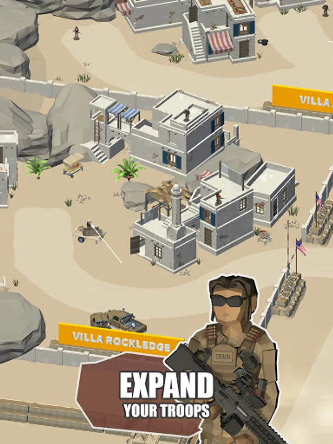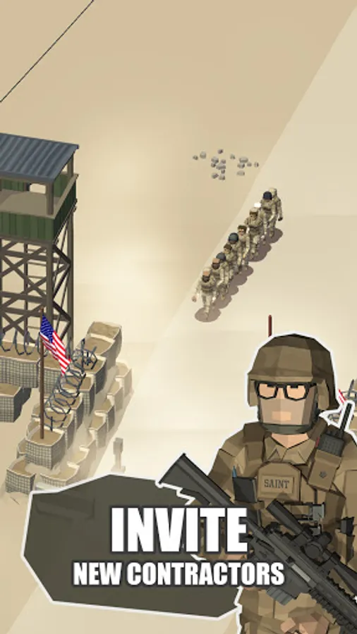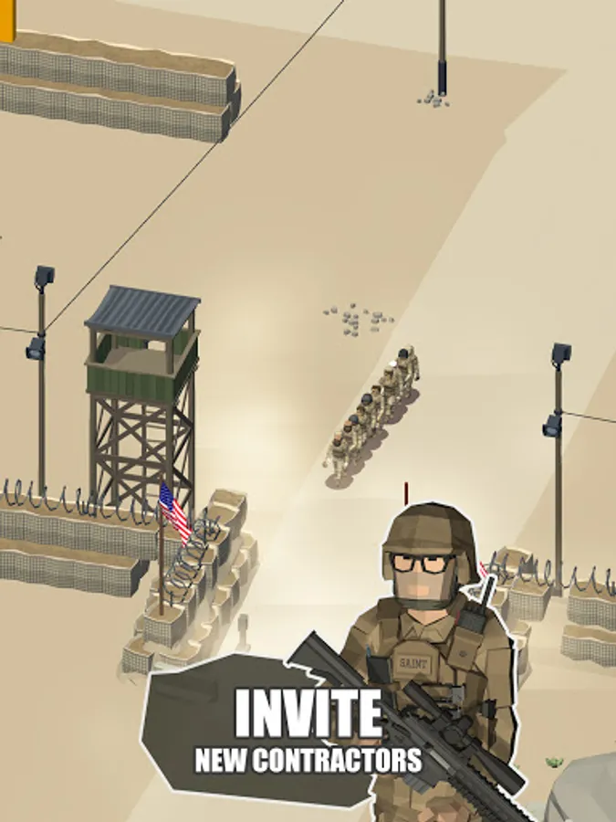 Complete missions and get gems to help you grow your warfare business faster. Retire old soldiers and recruit new ones. Use tons of random bonuses and keep fighting. Put all of those bad guys in prison!