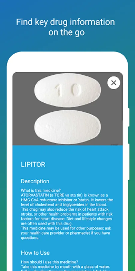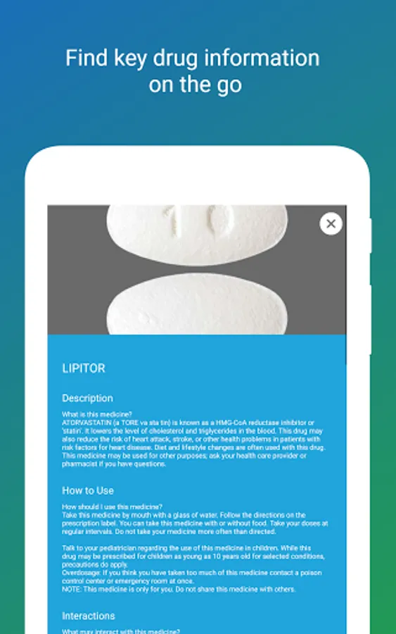 Check comprehensive drug information, side effects, interactions and other medication details using the app.