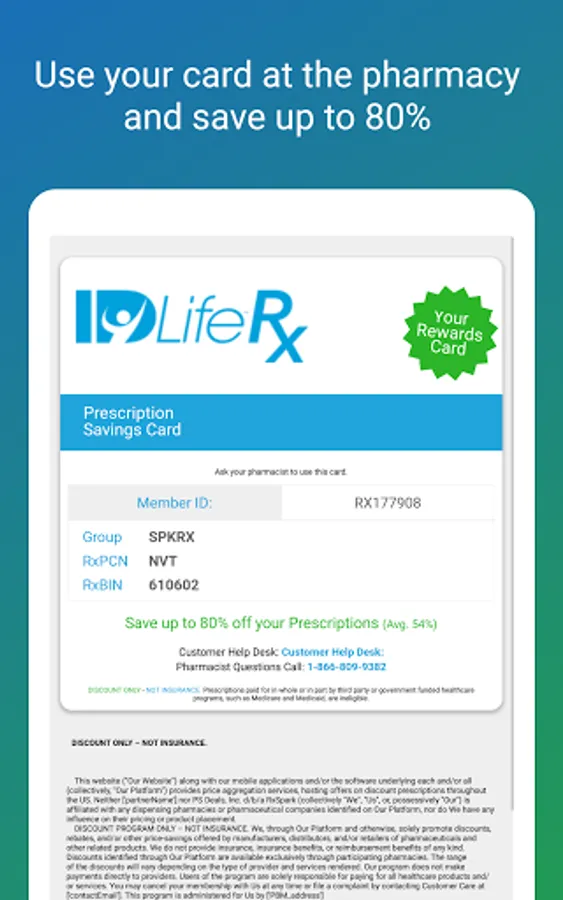Share with friends and family to help them save up to 80% on their meds and you will both earn rewards when they fill prescriptions using IDLifeRx.