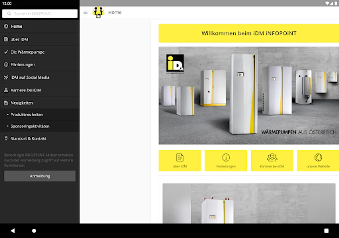 iDM iNFOPOiNT is the central app of the company iDM Energiesysteme GmbH. It offers current information and news about the company iDM Energiesysteme GmbH, the largest heating heat pump producer in Austria.