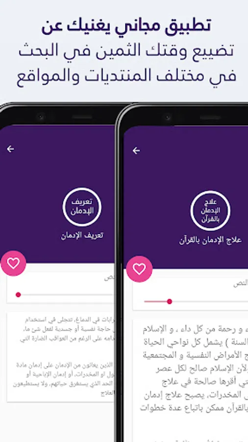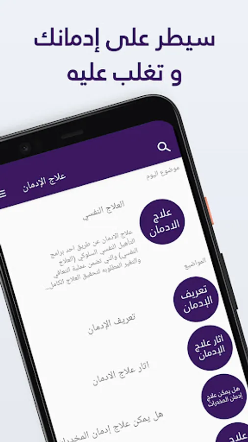 We offer you this free application that keeps you from wasting your valuable time in searching in various forums and sites, most of which are without result, so we specially made an application for you that helps you identify addiction causes, diagnosis and symptoms as well as tests and standards and also treatments, whether in the Holy Quran, medicines or Without it, how to prevent addiction and the resulting mental and physical diseases from negative thoughts, diseases and others, and how to maintain your mental health and how to eliminate, control and manage addiction.