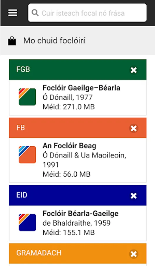Download up to 3 Irish language dictionaries plus grammar and sound files for Irish words with Teanglann, the companion app to www.teanglann.ie. Depending on your needs, you can download any or all of the following:-