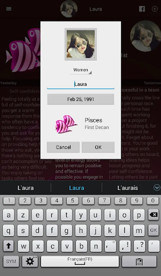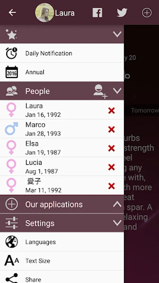Get your horoscope or that of your friends as a daily PUSH Message at a requested time !