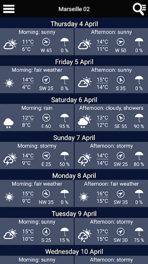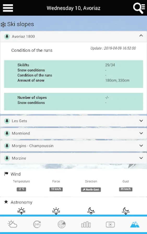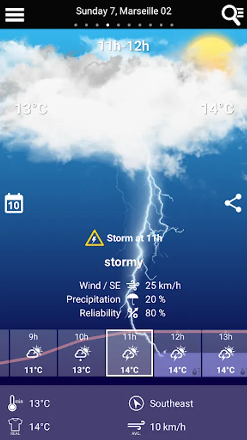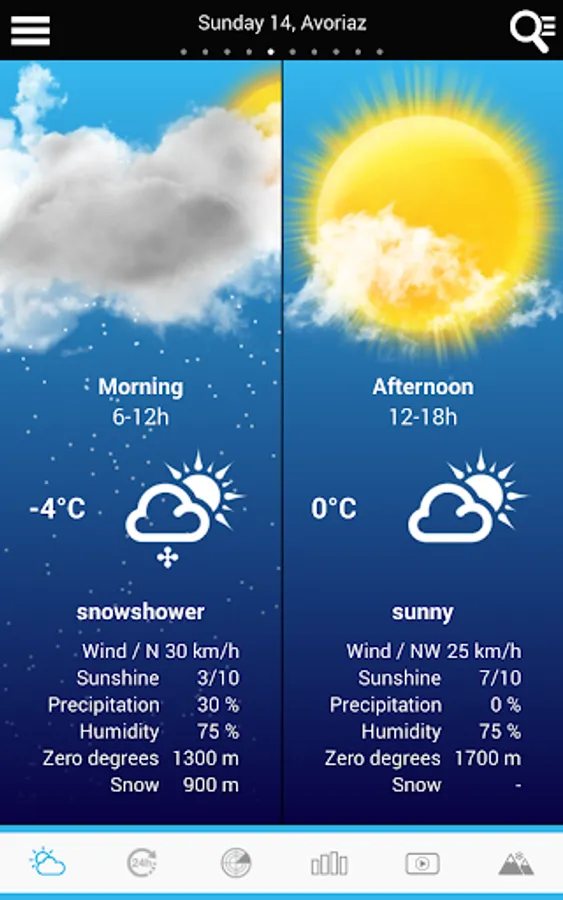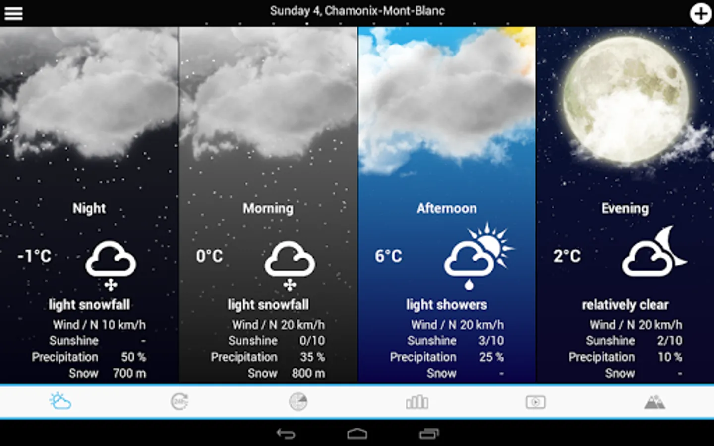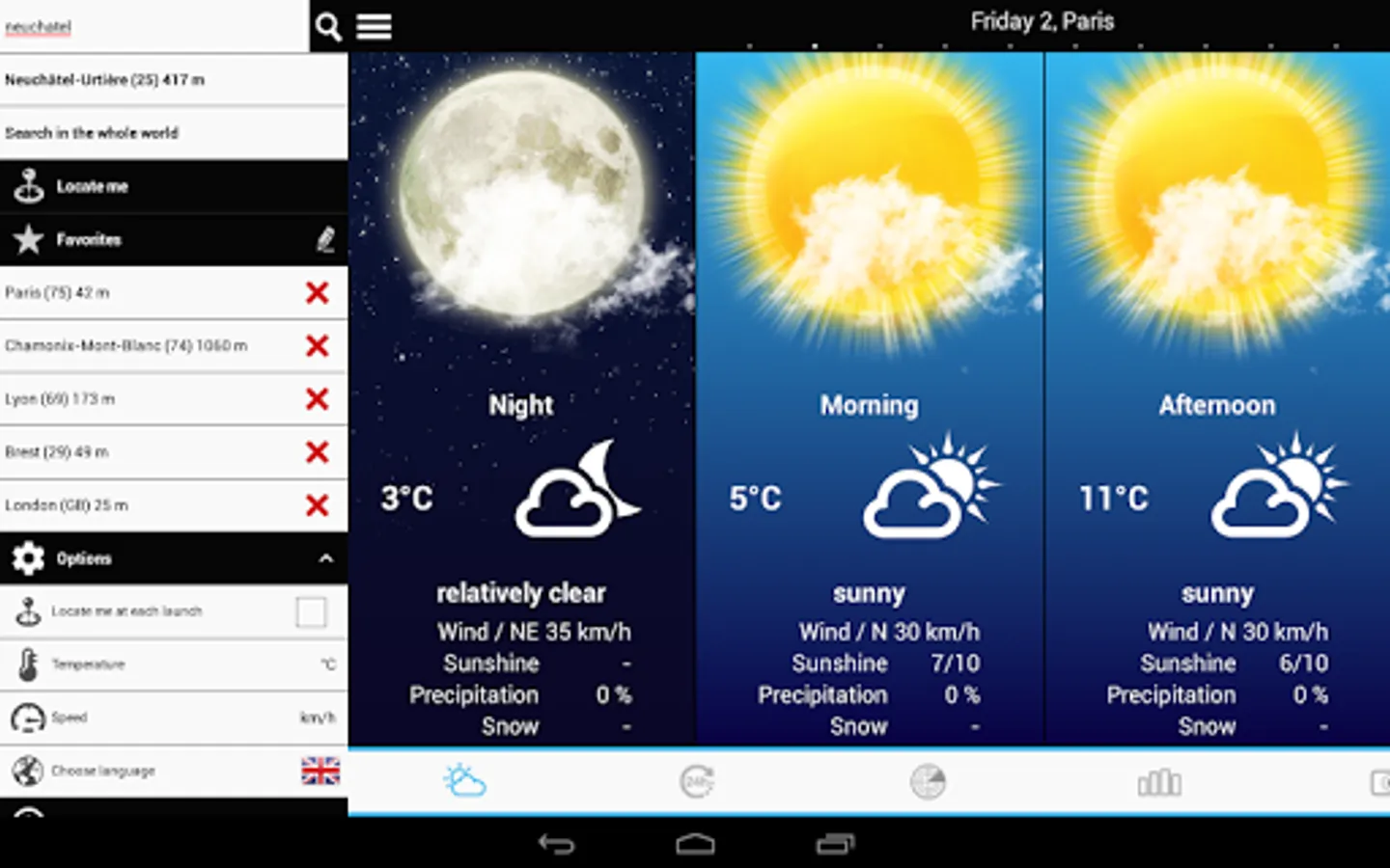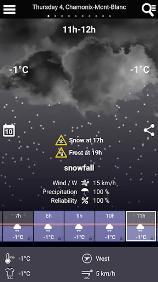 - Detailed weather forecast in 1 hour steps of the whole day in France, Belgium and Switzerland