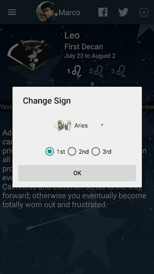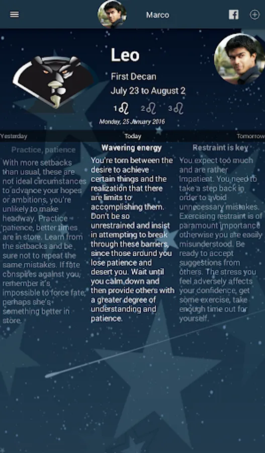 Detailed astrological predictions available for all of the zodiac signs and their 3 decanates